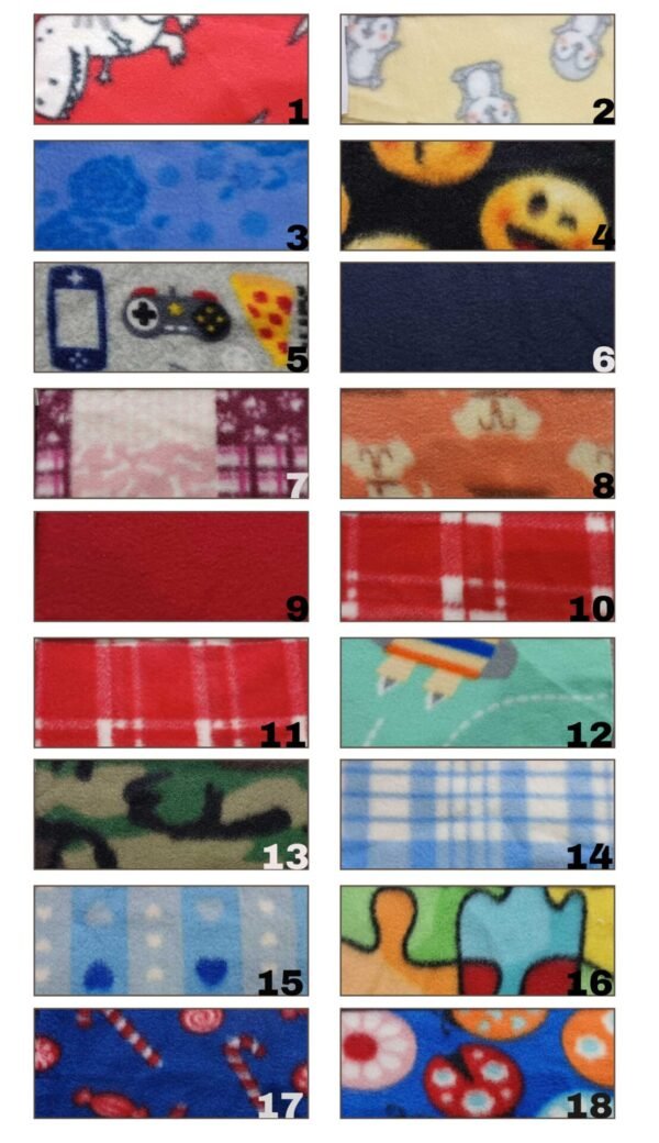 Forrado com tecido felpudo. As estampas são variadas e depende da disponibilidade.